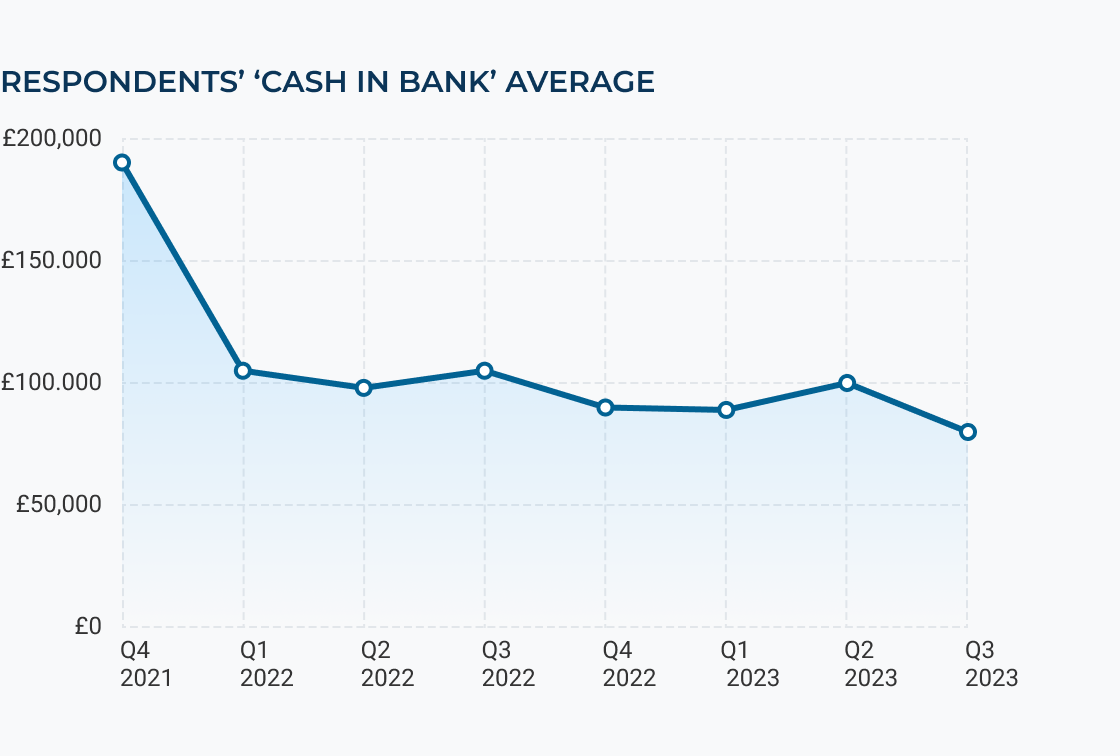The survey found that the average cash in bank position has fallen in across the third quarter.