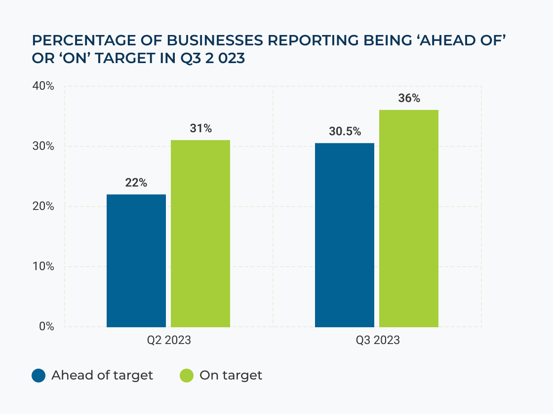 Equally positive was the increase in the number of SMEs reporting that they were currently tracking ahead of their targets: 31% compared to 22% in Q2.