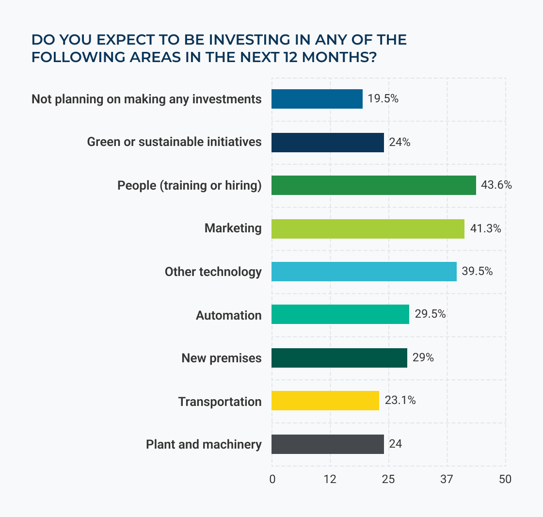Perhaps in recognition of continuing issues with the labour market, investing in people (training and hiring) was the most frequently cited area of planned
